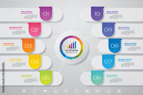 10 steps Timeline infographic element. 10 steps infographic, vector banner can be used for workflow layout, diagram,presentation, education or any number option. EPS10.