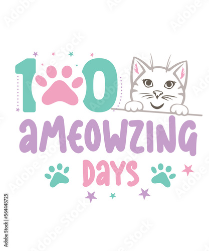 100 Ameowzing Days Svg, 100 days of school Svg, Cat School Cut File, Kitty Face Png, 100th Day of School Digital File, Funny Cat Saying Svg