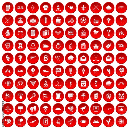 100 arrow icons set in red circle isolated on white vectr illustration