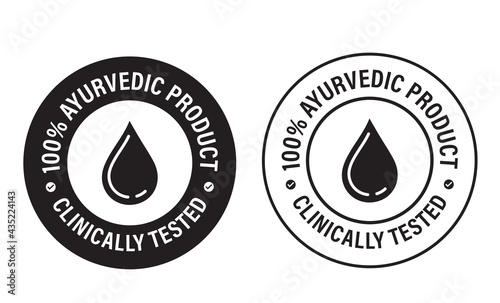 100% Ayurveda product, clinically tested vector stamp with drop icon. alternative medicine