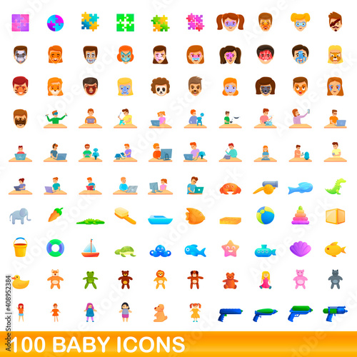100 baby icons set. Cartoon illustration of 100 baby icons vector set isolated on white background