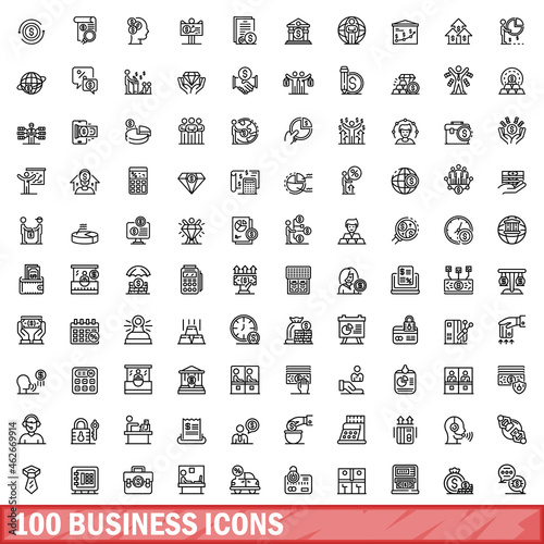 100 business icons set. Outline illustration of 100 business icons vector set isolated on white background