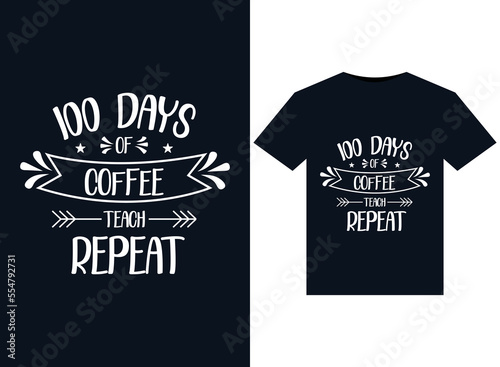 100 Days Of Coffee Teach Repeat illustrations for print-ready T-Shirts design