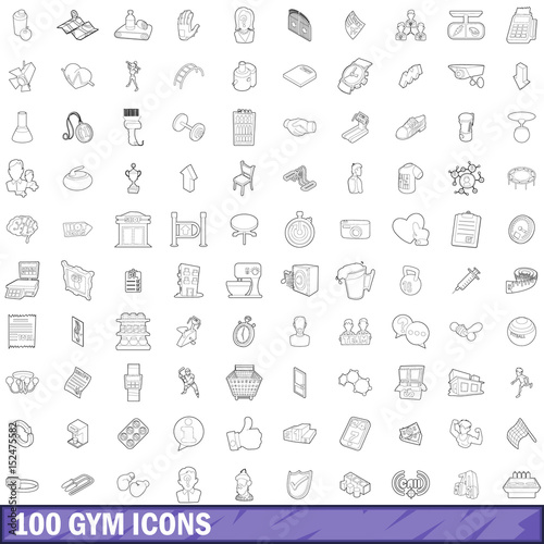 100 gym icons set, outline style