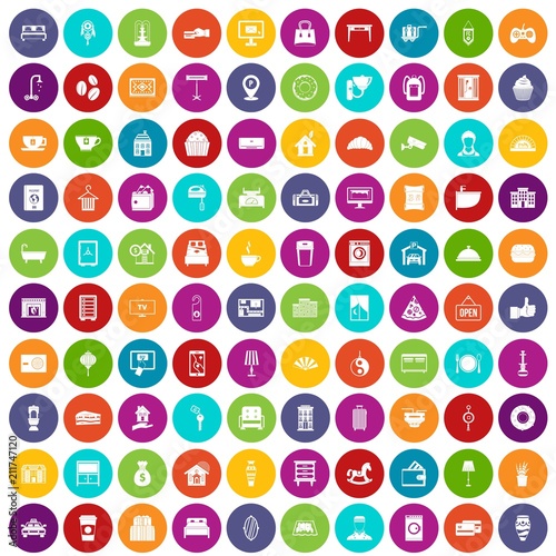 100 hotel icons set in different colors circle isolated vector illustration