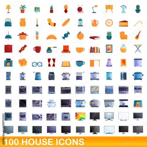 100 house icons set. Cartoon illustration of 100 house icons vector set isolated on white background