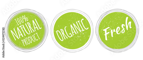 100% Natural Product, Organic and Fresh Food Label