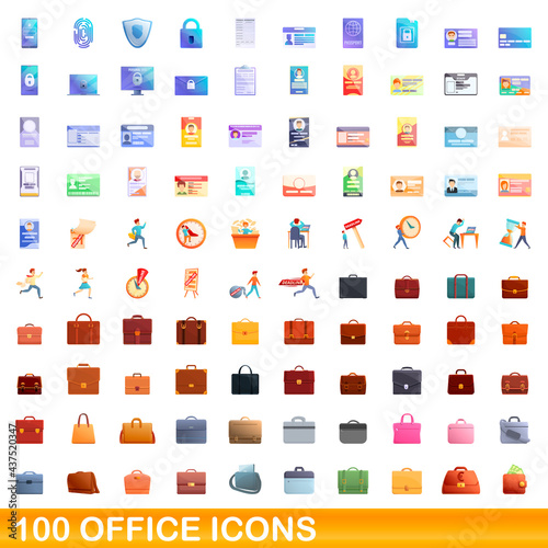 100 office icons set. Cartoon illustration of 100 office icons vector set isolated on white background