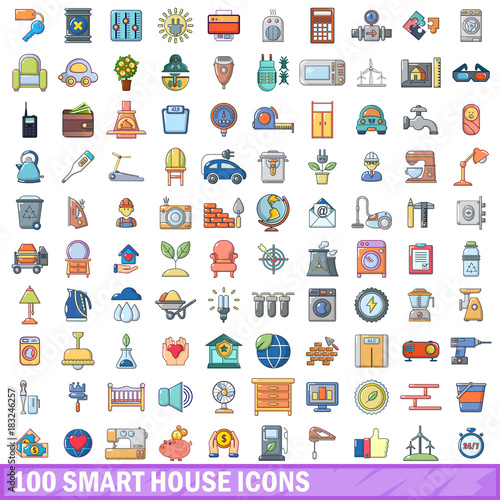 100 smart house icons set, cartoon style
