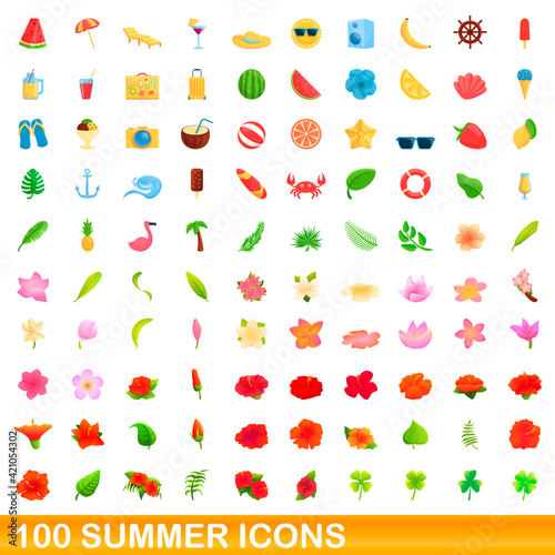 100 summer icons set. Cartoon illustration of 100 summer icons vector set isolated on white background