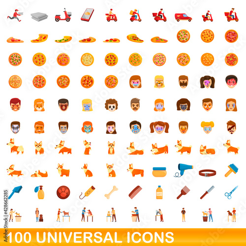 100 universal icons set. Cartoon illustration of 100 universal icons vector set isolated on white background