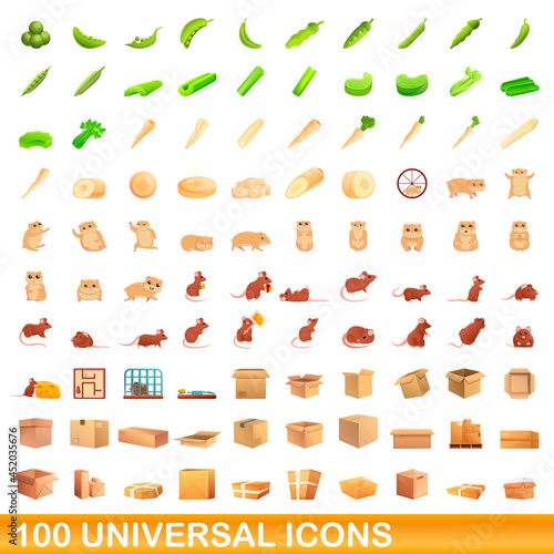 100 universal icons set. Cartoon illustration of 100 universal icons vector set isolated on white background