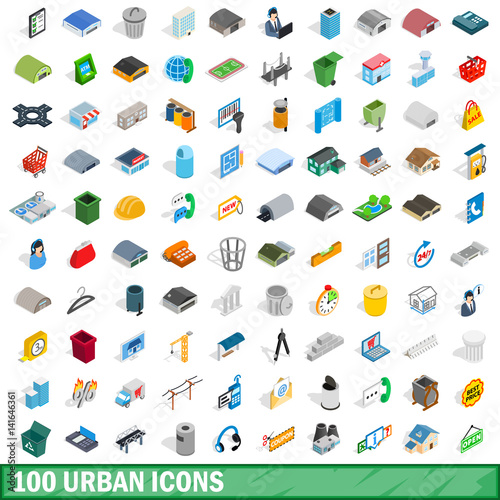 100 urban icons set, isometric 3d style