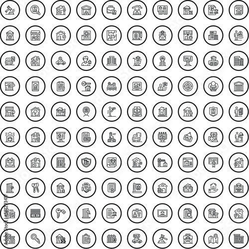 100 villa icons set. Outline illustration of 100 villa icons vector set isolated on white background