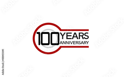 100 years anniversary with circle outline red color isolated on white background for company celebration, greeting card and invitation