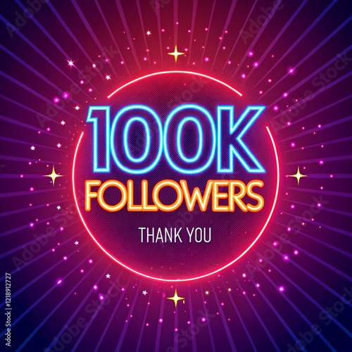 100k followers achievement thank you message with glowing outline effect, social media celebration post