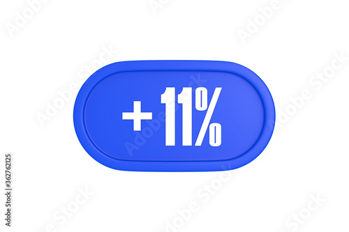 11 Percent increase 3d sign in blue color isolated on white background, 3d illustration.