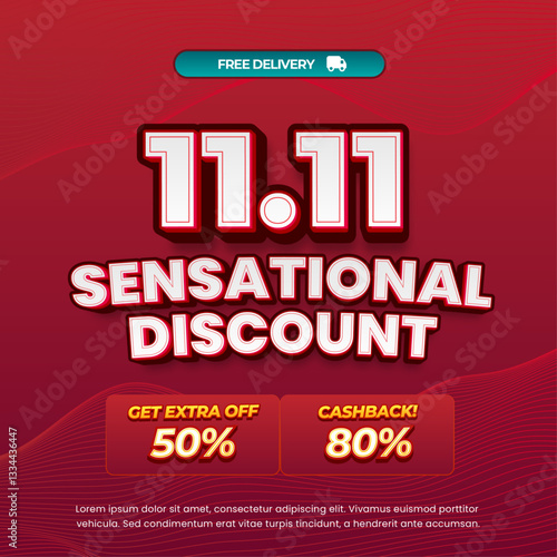 11.11 Sensational Shopping Sale discount deals soft dark red gradient Editable text effect Promo code wave line minimalist style Promotional square banner poster flyer