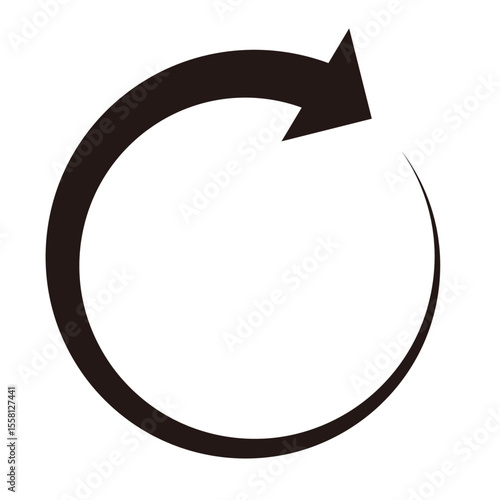 1つの矢印が回転するシンプルな回転矢印2(サイクル矢印) 黒 単体
