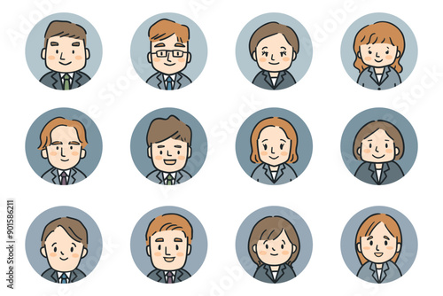 男女12人の顔アイコンのイラストセット