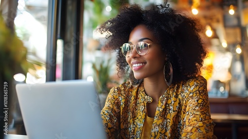 12. A virtual assistant creating engaging content on a laptop at a trendy cafe