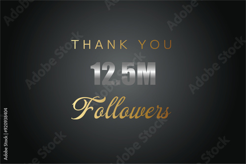 12500000 OR 12.5m followers celebration. Thank you 12500000 followers congratulation template banner. banner for social 12.5m friends and followers. celebrate subscribers and followers.