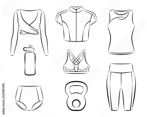 1321_Collection of woman sportswear, casual modern clothing for active woman