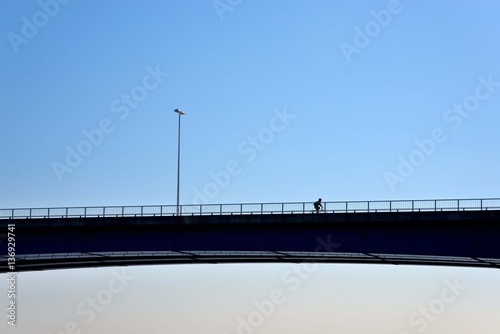 湘南大橋を走り抜けるスポーツサイクル 湘南の134号線の湘南大橋を自転車が走り抜ける姿が爽快だ。