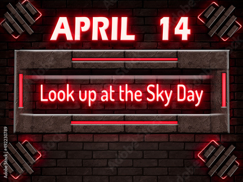 14 April, Look up at the Sky Day, Neon Text Effect on bricks Background