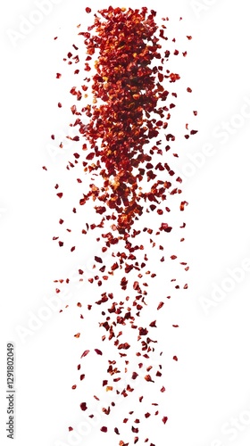 16. A cascade of red paprika powder particles floating downward, isolated on white