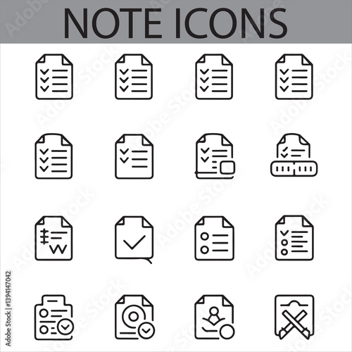 16 Icon Set for Writing, Editing, and Document Management – Checklist and Paper Designs