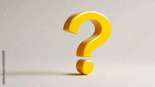 16121056 02 2.A bright yellow 3D question mark with smooth, reflective surfaces, casting a soft shadow on a clean white background for a minimalist design.