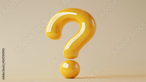 16121056 03 3.A detailed rendering of a glossy yellow question mark standing upright, with subtle lighting creating depth and a sense of realism, placed against a neutral gradient background.