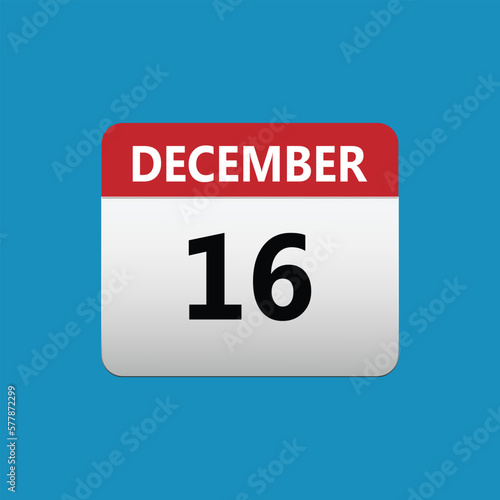16th December calendar icon. December 16 calendar Date Month icon. Isolated on blue background