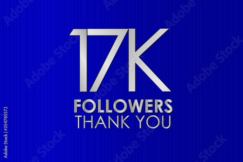 17K, 17.000 Thank you follower. Silver Color on Blue Background, for Social Media, Internet Account - Vector