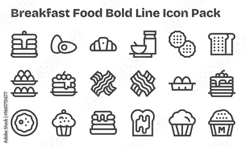 18 Breakfast Food Icons in Bold Line Aesthetic