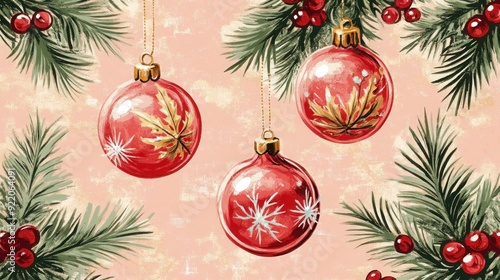 1950s Subtle Vintage Christmas Pattern on Pink Background