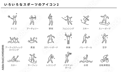 いろいろなスポーツのアイコンセット2、ベクター素材