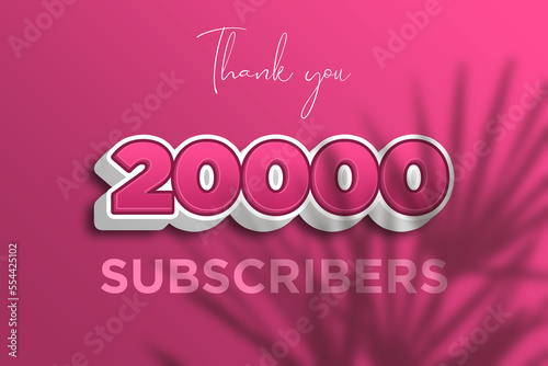 20000 subscribers celebration greeting banner with Pink 3D Design