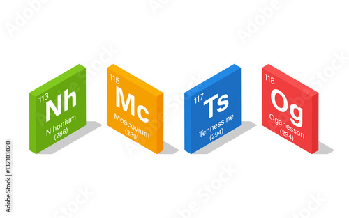 2016 New Elements in the Periodic Table - Nihonium, Moscovium, Tennessine and Oganesson - 3d isometric style