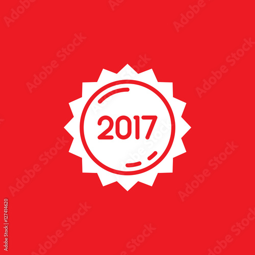 2017 year label, sticker icon vector, filled flat sign, solid pictogram isolated on red, logo illustration