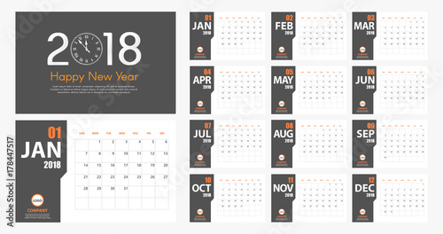 2018 New Year calendar simple modern style. Grey and orange. Event planner. All size. Vector illustration