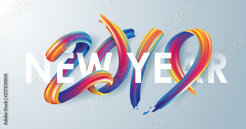 2019 New Year calligraphy with colorful brushstroke oil or acrylic paint design element for greeting card, flyers, leaflets, postcards and posters. Vector illustration.