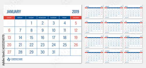2019 calendar week start Sunday corporate business luxury design layout template vector.
