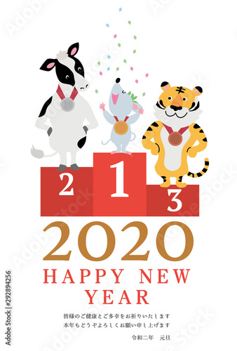 年賀状 2020 デザイン オリンピック 表彰式 ねずみ年 イラスト