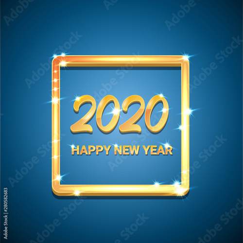 2020 Happy chinese new year of the Rat creative design background or greeting card. 2020 new year golden numbers on blue