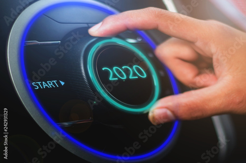 2020 symbolises the start into the new year.Start of people running on street,with sunset light.Goal of Success
