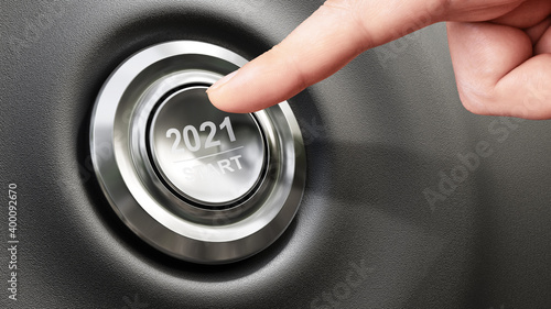 2021 - Press the start button. Concept of the New Year. 3D illustration