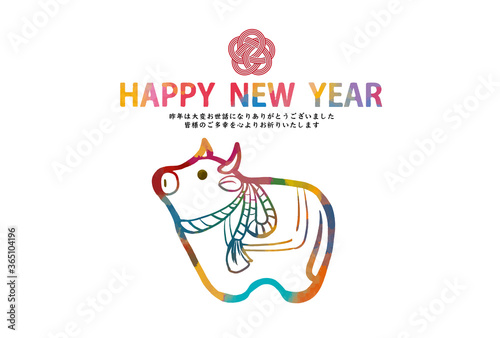 2021年 丑年 年賀状 テンプレート 素材