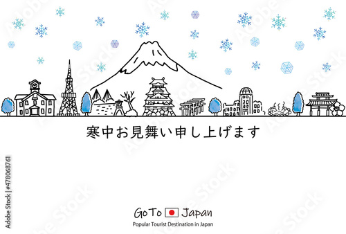 日本の観光地の街並み寒中見舞いテンプレート2022